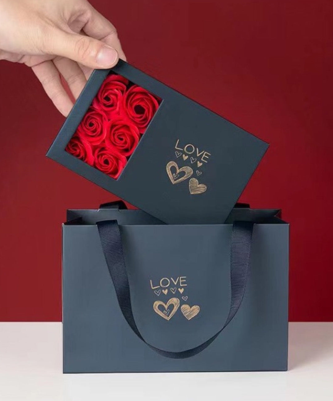 Offrez lui ce bijou dans une magnifique boite spéciale Saint Valentin contenant 6 roses éternelles.